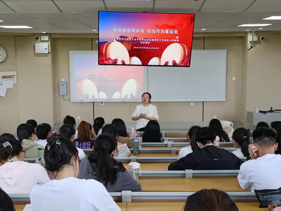 在本次党课中,姚三乐以“争做新时代有为的大学生党员”为主题,分别从“坚定理想信念,提高政治素养”、“提高学习能力,增强自身素质”、“发挥先锋作用,提高工作能力”和“加强群众联系,发挥纽带作用”四个方面对党员应具备的基本素养进行详细的讲述,他提出,当代大学生应不断提高政治理论修养,坚定理想信念,积极学习党内知识和当前国家时事,并将理论知识应用于实际行动中去。丁春晓以“学深悟透增本领,担当作为重实效”为主题,结合自身经历,为同学们分享了大学生应如何在大学中苦练扎实本领,怎样设立人生目标并逐步实现目标等实践问题。