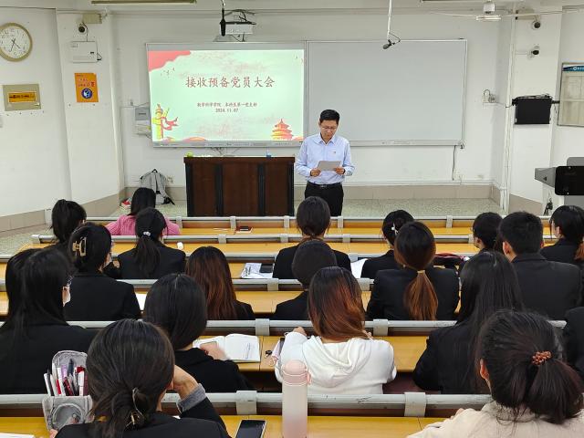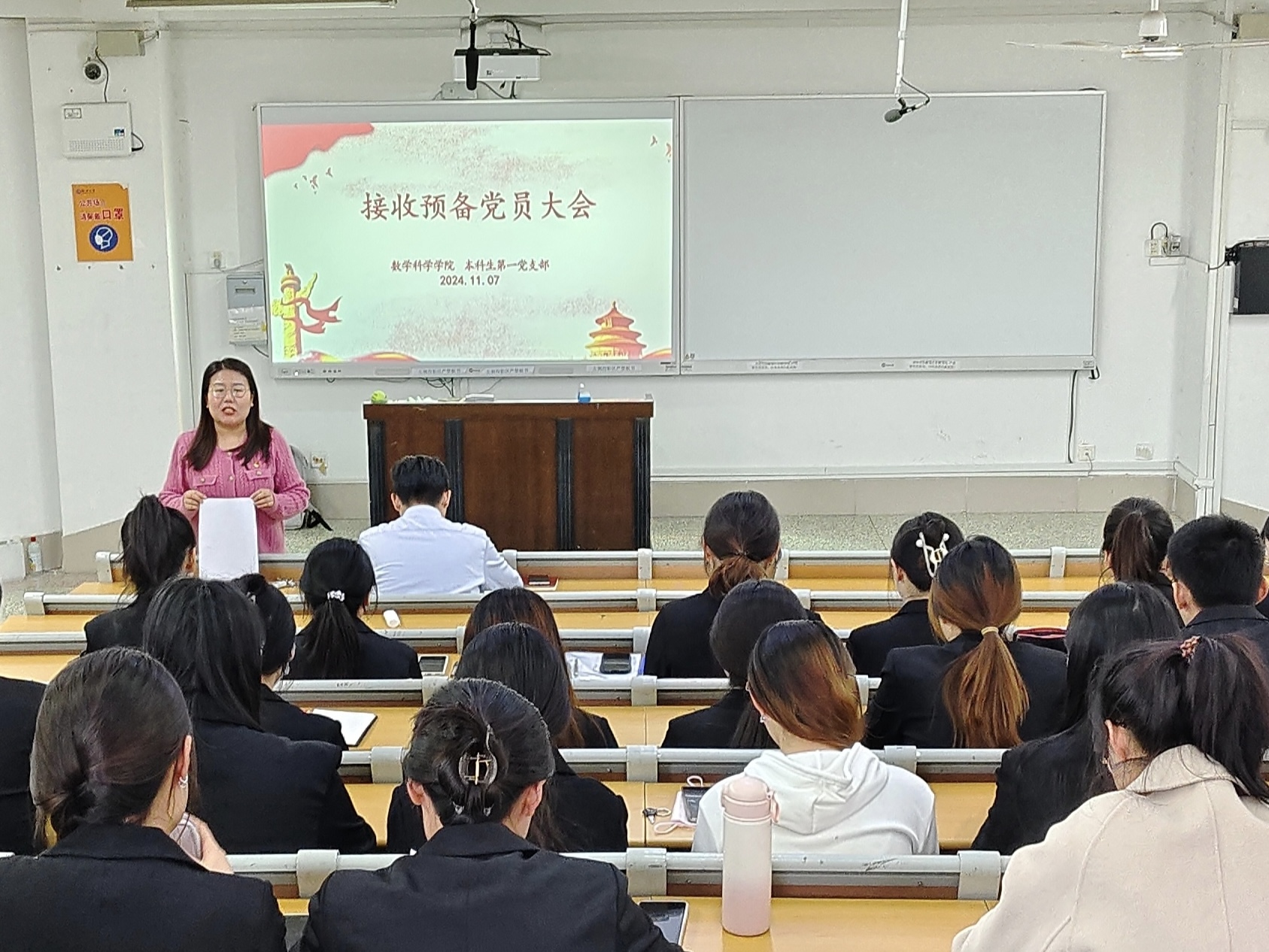 为加强党支部自身建设,推动党的各项工作有效开展,11月7日,喷水 本科生第一党支部于11号教学楼C204教室召开接收预备党员大会,会议由第一党支部书记岳琳琳主持,支部全体党员参加。