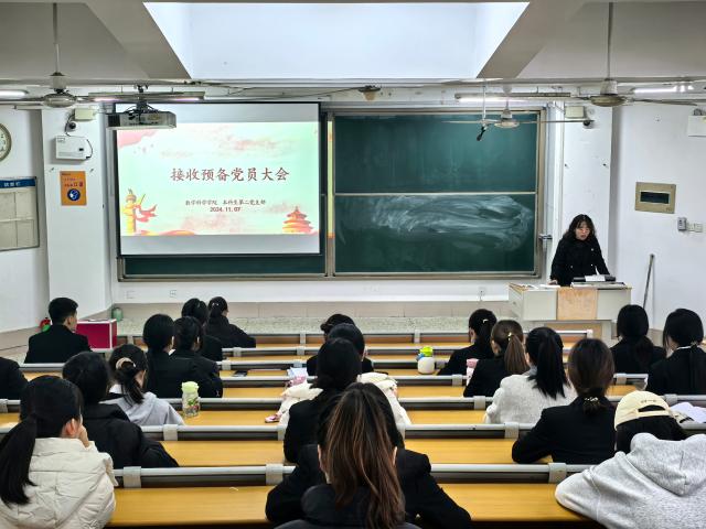 为扩大党的队伍,保持党的生机与活力,11月7日,喷水 本科生第二党支部于11号教学楼C310教室召开接收预备党员大会。会议分别由第二党支部书记张琦主持,支部全体党员参加。