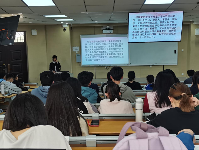 范老师以“继续发扬历史主动精神,以实际行动迎接党的二十大胜利召开”为主题,向同学们讲授了党的十九大和十九届历次全会精神,深入剖析中共一大到中共十九大召开的时间、背景、历史意义以及其中的红色故事等,引导同学们对我们党更深入的了解,了解党在发展过程中的曲折,认识到当下幸福生活的来之不易,作为当代优秀青年代表,范老师勉励入党积极分子们要坚定理想信念,心怀祖国和人民。接着范老师联系学习和生活实际为入党积极分子们深入解读了“四个意识”、“四个自信”、“两个维护”、“钉钉子精神”、“自我革命精神”、“历史主动精神”等内容,老师娓娓道来,同学们听的津津有味。