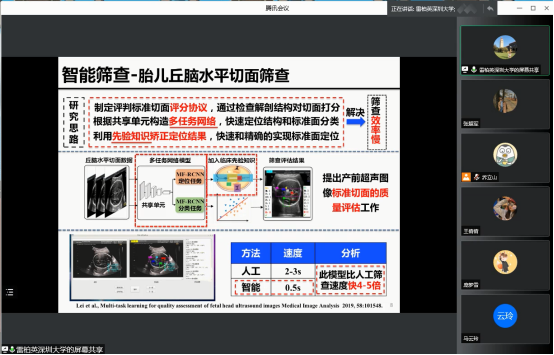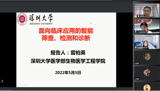 2022年5月5日(星期四)下午16:00,受喷水 智能数据分析团队邀请,深圳大学雷柏英研究员在线上做了关于面向临床应用的智能筛查、检测和诊断的学术报告,本次报告以腾讯会议的形式举行,由乔立山教授主持,喷水 部分教师、研究生聆听了报告。