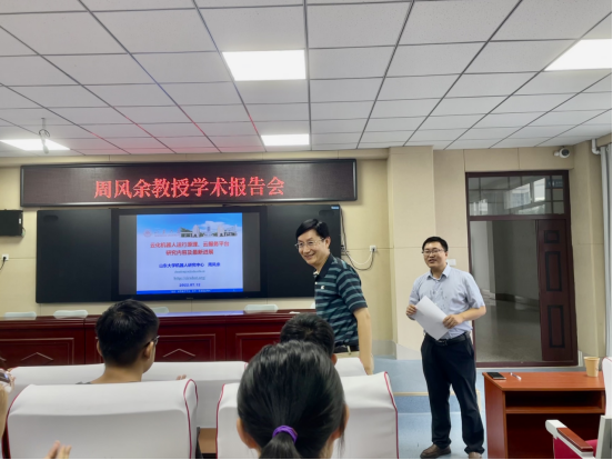 2022年7月12日下午15:00,受喷水 和机械与汽车工程学院邀请,山东大学机器人研究中心周风余教授针对云化机器人运行原理、云服务平台研究内容及最新进展进行了线下学术报告。本次学术报告会在11号教学楼A201举行,由夏建伟教授主持,喷水 和机械与汽车工程学院部分教师、研究生共计40余人参加了本次学术活动。