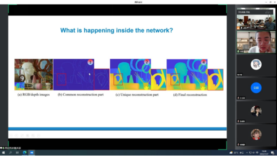 邓欣博士的报告结合自己研究工作,围绕图像恢复和图像融合两大应用场景进行。报告内容长达七十余页PPT,具体从传统字典学习,到卷积字典学习,再到目前流行的深度卷积字典学习。报告对相关工作的研究动机、理论建模和算法实现逐级展开,脉络清晰,使大家在了解相关知识的同时,更了解了这些优秀工作的研究思路和方法,可谓授之以鱼并授之以渔。邓欣博士的报告引起与会师生的极大科研热情,整个过程,气氛友好、交流热烈。