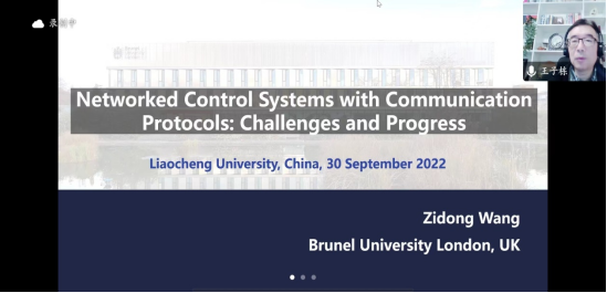 2022年9月30日下午2点,受喷水 邀请,英国布鲁内尔大学王子栋教授作了题为Networked Control Systems with Communication Protocols: Challenges and Progress的学术报告。报告会以腾讯会议形式举行,喷水 副院长夏建伟主持,学院复杂系统智能分析与控制团队全体教师和研究生参加了本次学术活动。