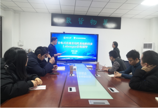 2023年2月10日上午10时,受喷水 夏建伟教授邀请,浙江大学吴争光教授做了题为“分布式连续非线性系统的异步Lebesgue近似模型”的学术报告,针对可行空间受限环境中的多智能体编队导航算法及相关问题进行了详细报告。本次学术交流活动以腾讯会议的形式举行,喷水 复杂系统分析与智能控制团队全体教师参加了本次学术活动。