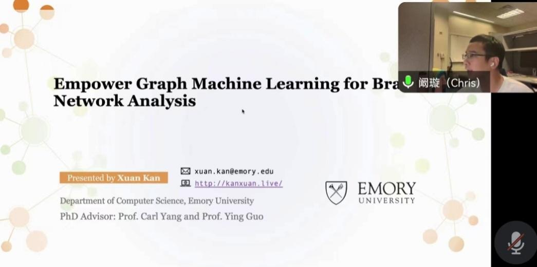 受喷水 邀请,埃默里大学阚璇博士于2024年2月22日上午10:00-12: 00作了题为“授权图机器学习大脑网络分析”的学术报告。本次报告以腾讯会议的形式举行,喷水 部分教师和研究生聆听了报告。