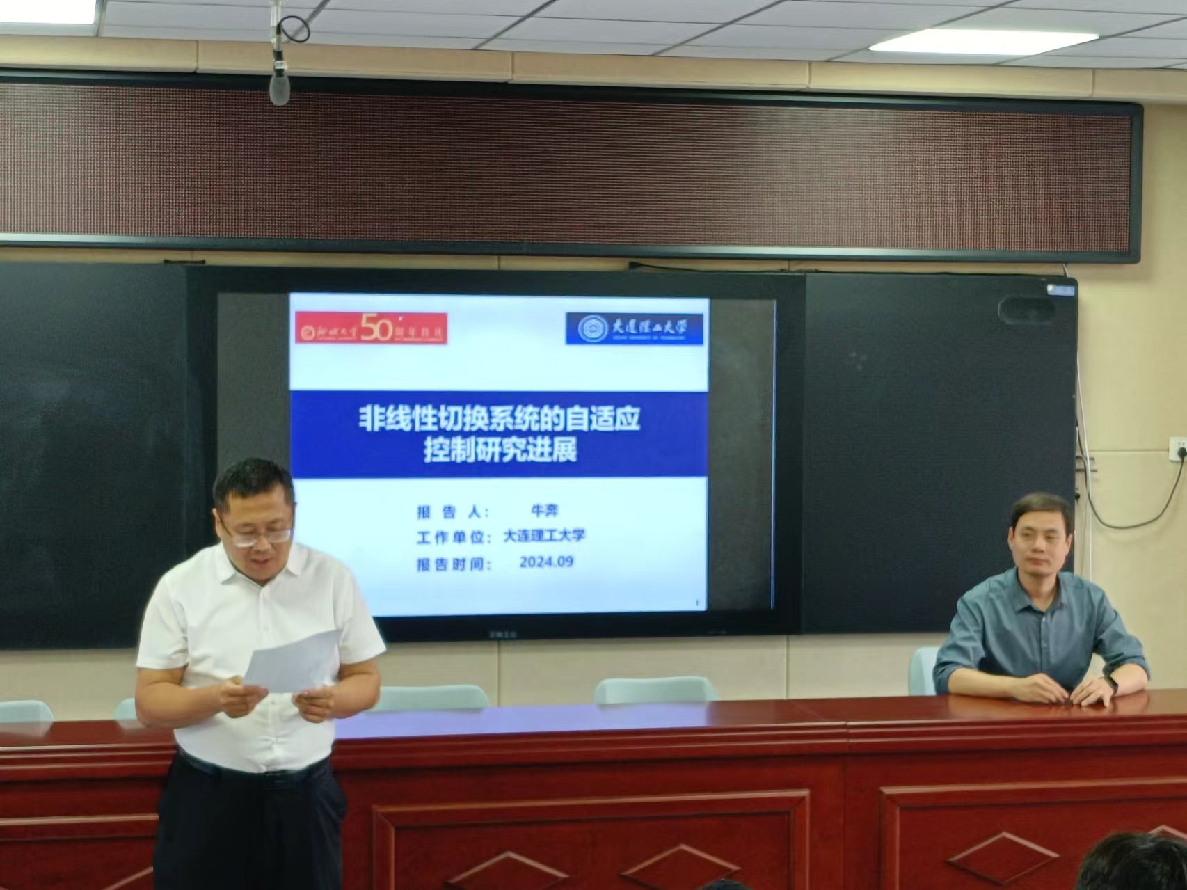 2024年9月25日下午,大连理工大学牛奔教授应邀做客聊大讲坛,作了题为“非线性切换系统的自适应控制研究进展”的学术报告。报告会由喷水 副院长赵军圣主持。来自喷水 的五十多名教师和研究生听取了报告。