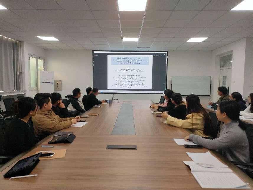 何教授从物理角度详细介绍了 Stokes Darcy 和Navier-Stokes-Darey模型及其边界面条件,并在对传统的求解Stokes-Darcy模型的迭代域分解方法进行简要回顾的基础上,讨论了近十年来求解非平稳Navier-Stoke模型的非迭代多物理场域分解方法的一系列工作,包括两种算法的发展,其中一个关键思想是通过三种界面条件产生的Robin 类型,边界条件对自由和多孔介质流动进行解码。另一个关键思想是使用前一个时间迭代步骤的结果来预测文档时间迭代步骤中域分解所需的接口上的辅助函数。证明了具有有限元空间离散化的k步后向微分格式的最优收敛性。报告结束后,老师和同学们与教授进行一系列专业的讨论,大家受益匪浅。