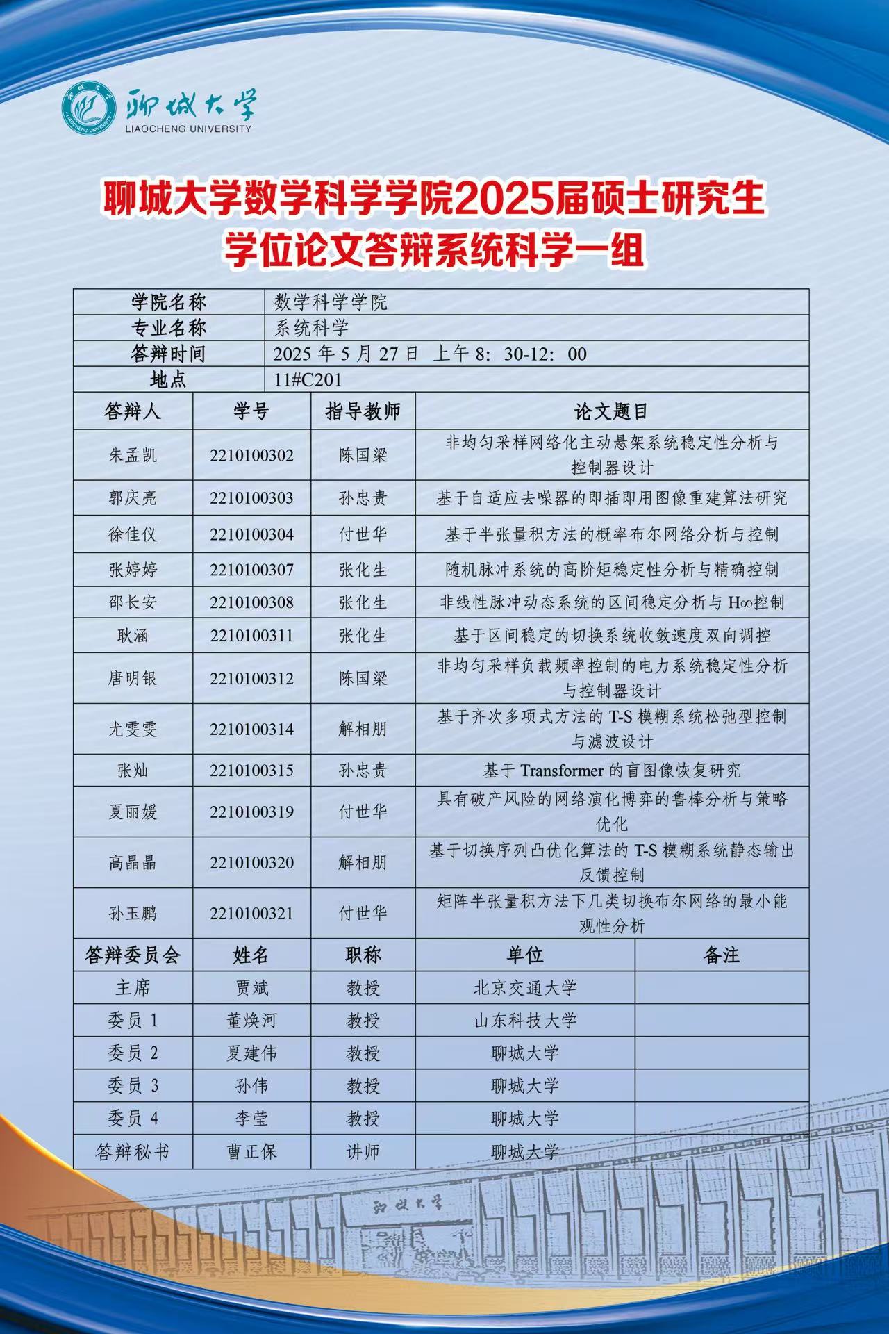 喷水 2022届系统科学专业硕士研究生答辩公告