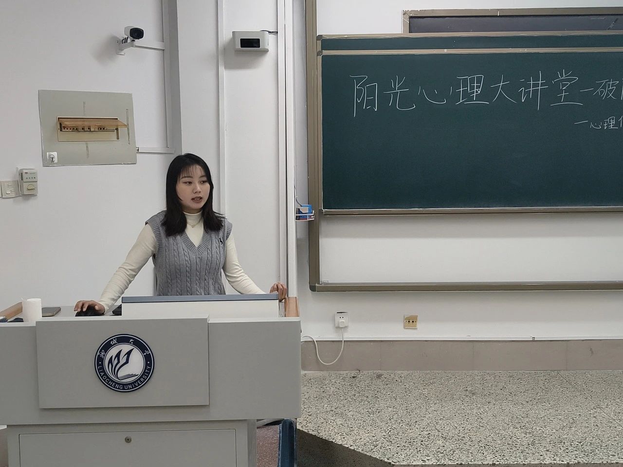 11月18日,喷水 于11号教学楼A207举办“阳光心理大讲堂”活动,本次活动由教育科学学院研究生曹欣欣主讲,2023级部分同学参加。