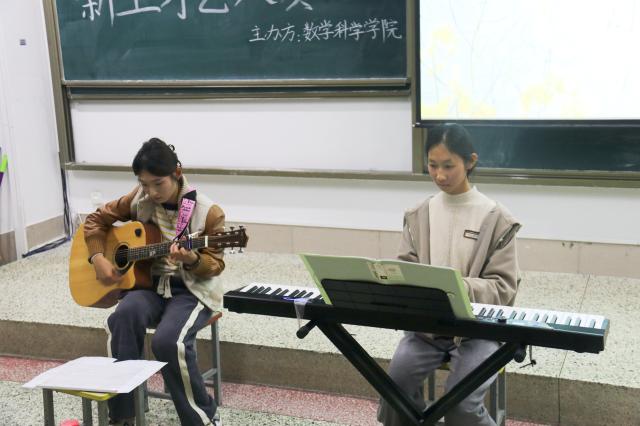 此次新生才艺大赛在主持人发言后正式拉开帷幕,同学们各展所长,精彩纷呈。开场歌曲《像风一样》奏响此次大赛的序章,随后,歌曲《最后一页》《可不可以》《冬眠》《heartbreak anniversary》《姑娘别哭泣》《always online》《哈鹿哈鹿哈鹿《我走后》《黑夜问白天》《all falls down》《他不懂》深情演绎,音符与旋律交织在一起,触动了在场每一位来宾的心弦;朗诵《致橡树》感情真挚,情绪饱满,带领大家一起见证了不卑不亢、至纯至美的爱情;器乐表演《十年人间》用娴熟指法奏响岁月沧桑,《晴天》明快合奏带来阳光般温暖,奏响一曲悠扬的乐章;舞蹈《Gee》用激情与活跃点亮舞台,热情洋溢的舞蹈动作整齐划一,充满了青春的活力与朝气,将现场活动氛围推向高潮。中场休息环节,主持人组织学生进行抢凳子游戏,现场欢声笑语不断,比赛在同学们热烈的掌声中完美落幕。