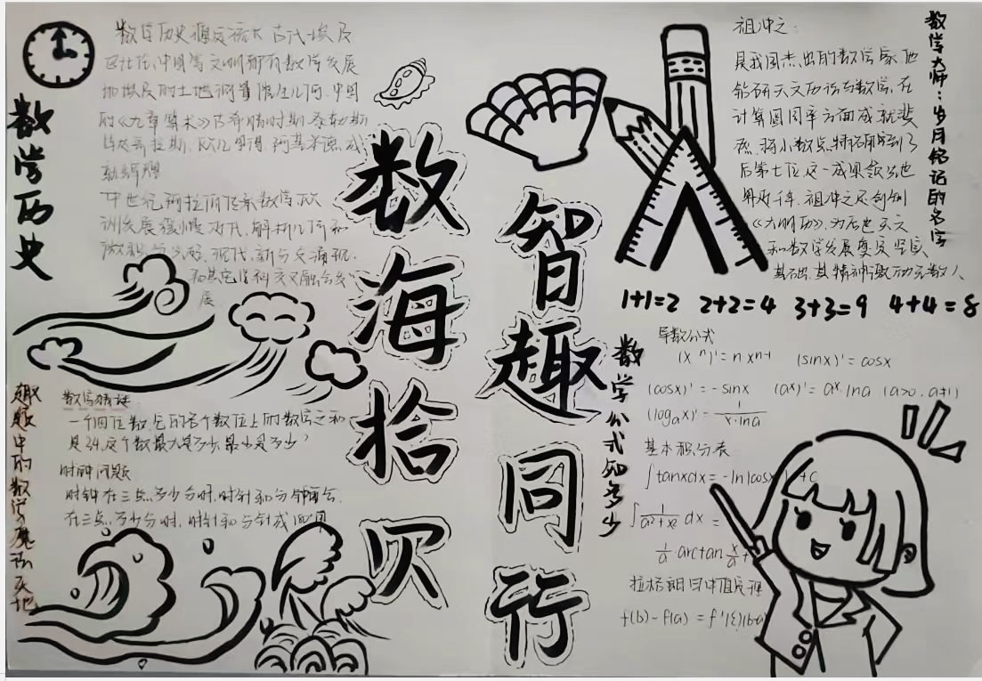 为激发学生对数学的学习热情,巩固数学知识,增强学生运用数学知识的灵活性,11月10日至11月11日,喷水 于线上开展“数学知识分享”手抄报征集活动,部分学生参加。