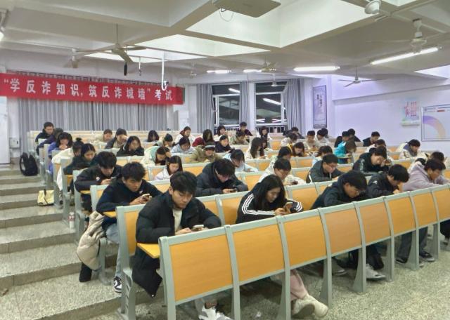 本次反诈知识考试采用线上答题的形式进行。题目涵盖网络诈骗、电话诈骗、短信诈骗等多种常见的诈骗手段,内容不仅涉及识别诈骗行为的方法,还包括遇到诈骗时的应对策略和报警流程等。全面测试学生对反诈知识的掌握程度,力求让学生全面、深入地掌握反诈知识,帮助学生在实际生活中更好地应对各种诈骗手段。考试期间,同学们纪律严明、认真专注,以高度的责任感践行考风考纪,严格遵守考场规则,细致作答每一道题目,整个考场秩序井然,尽显学院优良学风。