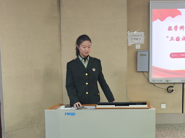 活动伊始,桑麒舒以自己军旅生活为切入点,向学生分享了自己难忘的军旅回忆,生动讲述了自己在军营中的珍贵收获,使学生对部队有了一定了解,产生了浓厚的兴趣,通过讲解“国”字的组成来引导学生思考并切实体会到国防安全与自身息息相关,重点强调学生在网络平台上的言行举止要时刻牢记总体国家安全观,不触碰红线,争做时代新青年。宣讲中期,她为学生详细介绍了入伍的年龄、学历等征兵要求,清晰讲解了报名的各个环节和工资津贴方面的问题,阐述了如入伍前的学业保留、服役期间的晋升机会、退役后的就业扶持等大学生优惠政策,她结合身边的生动实例,让学生了解作为当代大学生参军入伍对个人成长和国家发展的重要意义。宣讲结束后,学生们积极提出有关征兵的问题,桑麒舒都一一进行细致且专业的解答。随后,学生展开自由讨论,纷纷表达自己对军人的崇敬之情和对军旅生活的向往,现场气氛热烈,进一步加深了学生对参军入伍相关事宜的认识和理解。