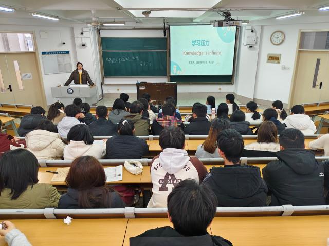 活动伊始,李云香通过讲解心理学知识向学生阐述学业压力的产生原因及其对心理和生理的影响。她指出,学业压力不仅会影响学习效率,还可能导致焦虑、抑郁等心理问题,但是适当的压力也可以成为自我突破的动力,并非“压力即失败”,关键在于如何正确认识和应对压力。在互动环节,学生积极参与,提出自己在面对学业压力时的困惑,李云香耐心倾听并提供针对性的建议,分享了深呼吸、时间管理、目标设定等一系列实用的压力调试策略,鼓励大家通过积极的自我对话和认知重构,将学业挑战转化为个人成长的契机。最后,李云香总结压力管理是一个长期的过程,需要大家在日常生活中不断实践和调整,要勇敢面对挑战,不断提升自我。