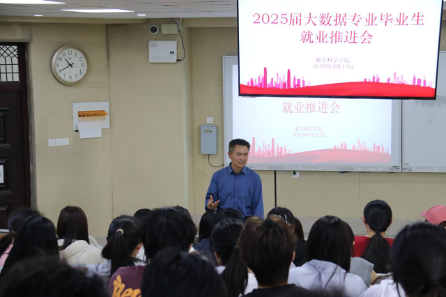 会议旨在帮助毕业生更好地了解当前就业形势,掌握就业技巧,提高就业竞争力,促进毕业生更加充分更高质量就业。在会议上,张进军对当前就业形势进行了深入分析,结合近年来数据科学与大数据技术领域的发展趋势以及市场需求变化,指出虽然该专业就业前景广阔,但竞争也日益激烈,毕业生需提前做好准备,积极把握就业机会。他还鼓励同学们树立正确的就业观和择业观,不要局限于传统的就业方向,要勇于尝试新兴领域和岗位,以适应快速发展的行业需求。