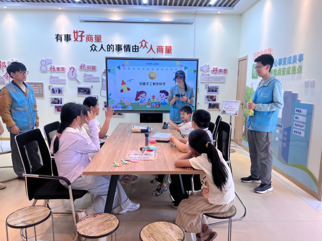 本次活动分为知识讲解、互动提问、手工创作三个环节。志愿者化身“环保小老师”,借助精心制作的PPT,以童趣化的语言向小朋友们讲解垃圾分类的基本知识,从垃圾的四大分类、分类的意义到常见的分类方法,向孩子们普及环保知识,引导他们养成垃圾分类的良好习惯。互动提问环节,志愿者积极鼓励孩子们分享自身的环保行动,小朋友们踊跃举手发言,在交流中加深了对环保行动的认知。手工创作环节,在志愿者的帮助下,孩子们充分发挥想象力,将塑料瓶、废纸、易拉罐等废旧物品,变成了精美的笔筒、创意花盆和趣味小摆件等,在动手实践中切身感受到了“变废为宝”的魅力,体会到资源循环利用的价值。