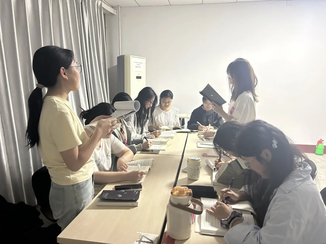 主持人通过引用“立身以立学为先,立学以读书为本”等经典名言,阐述了阅读在传承智慧、拓宽认知中的重要意义,分享了优秀书籍对个人成长的积极影响,引导学生沉浸式感受阅读魅力。活动进入阅读和分享环节,在“高效阅读笔记工作坊”中,学生学习了康奈尔笔记法与思维导图笔记法,选取心仪书籍进行实践,通过笔记展示与交流,进一步提升信息整合能力;在“故事续写挑战”中,学生选择一篇经典文学作品的开篇段落,在阅读原作风格后,进行即兴创作,激发学生的创作热情。自由分享环节,学生们以5人一组,结合自身经历展开讨论,或讲述书籍对自己的启发,或讲述阅读带来的情感共鸣,并分享讨论成果,进一步增进对阅读价值的认知。