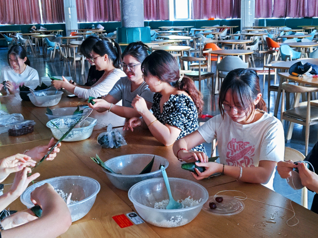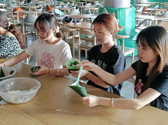为传承和弘扬中华优秀传统文化,使学生进一步了解端午节的文化底蕴,感受浓厚的节日氛围,5月29日,喷水 于湖苑餐厅二楼开展“粽叶飘香五月五,浓情端午共安康”包粽子活动。