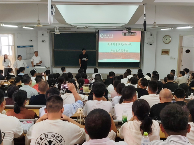 活动伊始,牛玉帅热情欢迎家长们的到来,表明希望以此次见面会为契机,和家长们保持密切交流。赵军圣介绍了喷水 的发展脉络以及学院的师资优势,讲述了学院在教学科研方面的亮点。随后,赵军圣通过分析学院考研考博的高升学率,以及学生在全国大学生数学竞赛等赛事中斩获的佳绩,让家长充分了解了学院的教学力量。针对数学与应用数学、数据科学与大数据技术专业的就业形势,赵军圣鼓励学生继续深造,帮助学生树立目标,积极探索专业领域,提升综合能力。最后,他强调了家校合作的重要性,希望家长能和学院保持联系,助力学生在大学收获成长与进步。