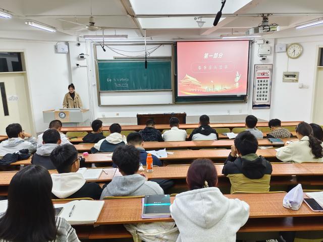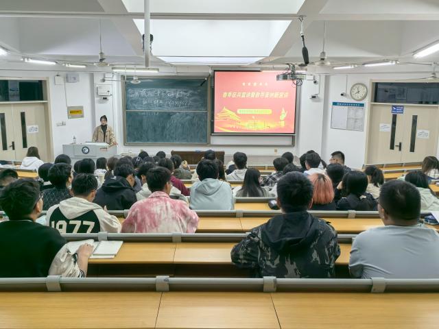 首先,武鑫琳向同学们详细解读了春季征兵的条件、报名流程以及大学生参军的优惠政策,让他们对参军报国的意义与价值有了更具体的认知。其次,武鑫琳通过视频展示,具体讲解了教导营的职能定位与纳新要求,并强调教导营是锤炼意志、提升能力的重要平台,能够通过系统化训练与多样化实践,助力学生全面成长。互动环节,同学们积极提出问题,武鑫琳耐心细致解答,进一步加深了大家对征兵政策的理解,现场气氛浓厚热烈。最后,武鑫琳鼓励同学们将个人理想融入国家需求,无论在军营还是在教导营,都要锤炼品格、增长才干,用青春与担当书写无悔篇章。