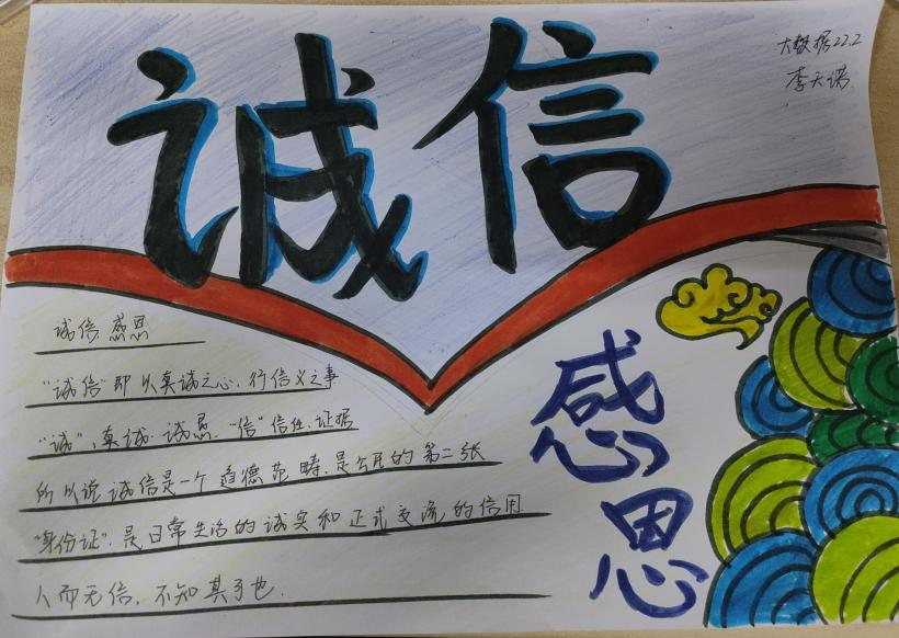 5月23日至5月27日,喷水 于线上举办“诚信感恩,励志笃行”手抄报活动,喷水 部分同学参加。