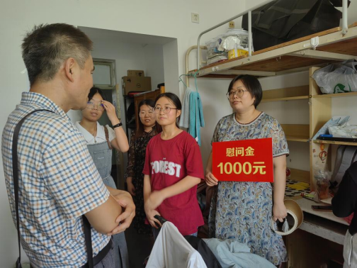 6月27日至6月28日,喷水 于学生公寓学苑一开展宿舍走访慰问活动,喷水 党委副书记、副院长张进军,团委书记岳琳琳,辅导员张晓冬对部分家庭经济困难学生进行宿舍走访慰问。