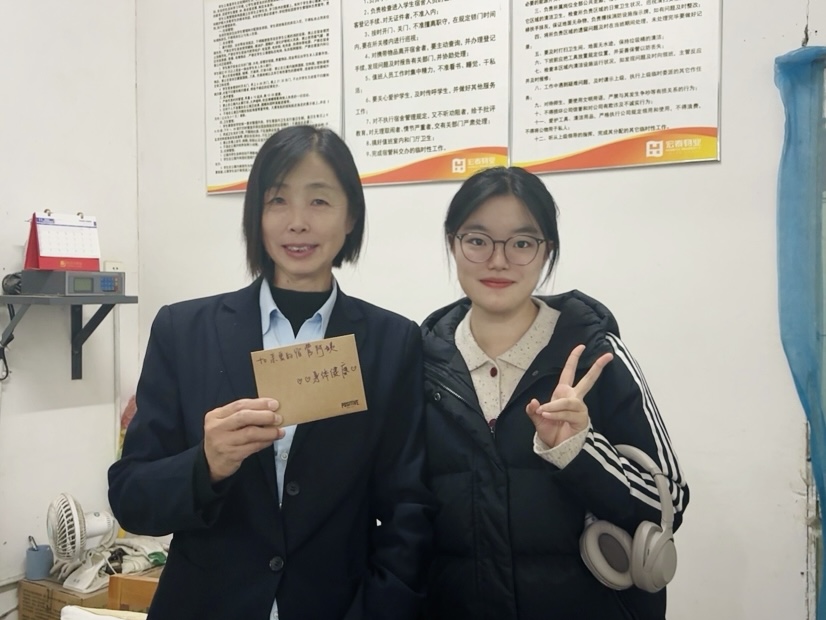 活动期间,学生借助便捷的网络工具,突破时空限制,将平日里的感激之情化作一封封情真意切的感谢信。这些信件或写给学校辛勤付出的安保卫生人员,或赠予携手同行的挚友,或呈给辛勤耕耘的师长,又或是送给在生活中无私提供帮助的宿管工作人员,写好后学生将感谢信送给收信人,表达对他们的感谢,并与其合影留念。每一封信都如同一束光,穿透屏幕,照亮了收件人的心田。一位参与者感慨道:“在这个快节奏的时代,我们常常忽略了身边的温暖。这次活动让我有机会静下心来,认真地向那些给予我帮助的人表达谢意,这种感觉真的很美好。” 这些信件不仅是文字的组合,更是情感的桥梁,连接着人与人之间的心灵,让感恩的力量在彼此之间传递、蔓延。