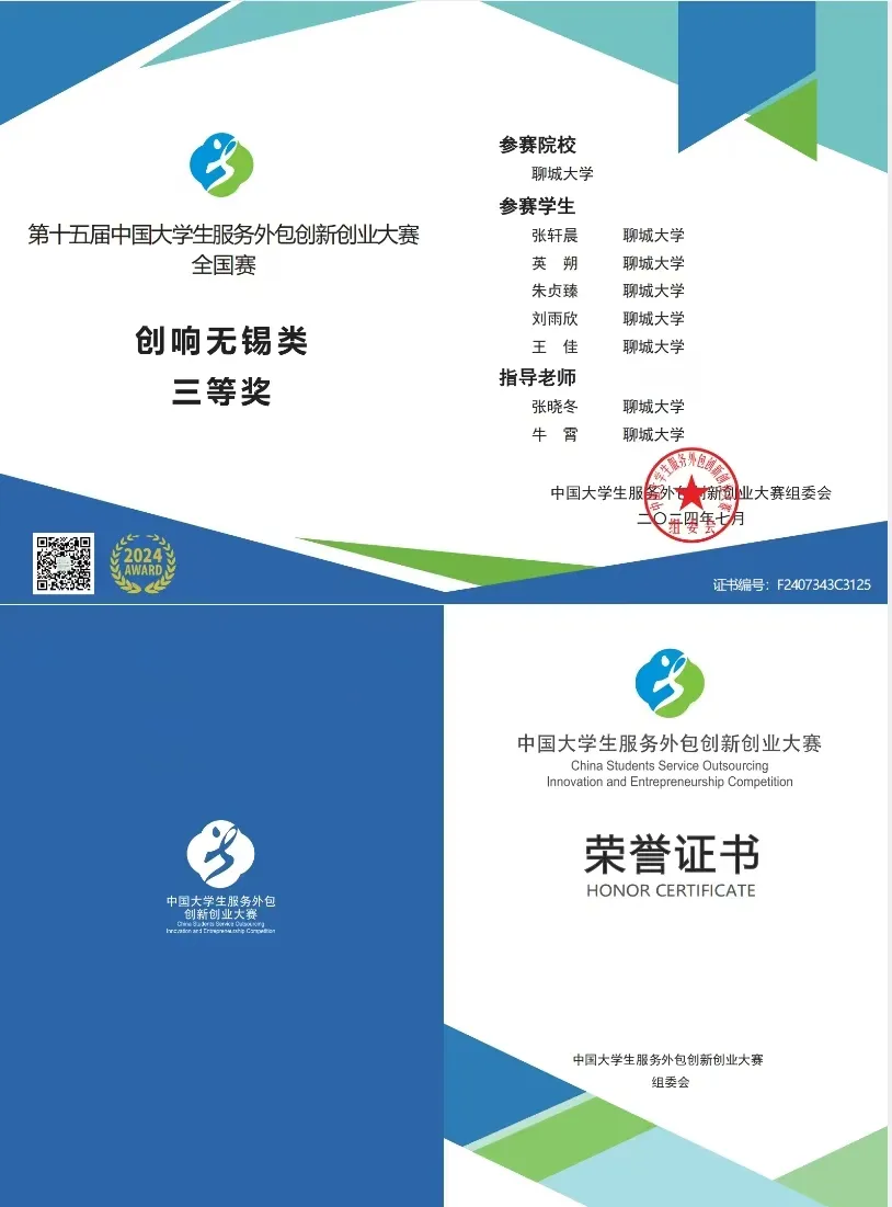 就在近期,第十五届中国大学生服务外包创新创业大赛的全国总决赛已经顺利落下帷幕。第十五届中国大学生服务外包创新创业大赛共有来自 857 所全国高校的 8801 支队伍同台竞技,喷水 学子再创佳绩。2022级学生张轩晨、刘雨欣荣获创响无锡类三等奖。