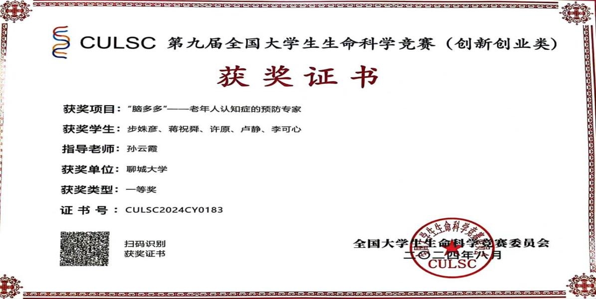 近日,2024 年全国大学生生命科学竞赛成绩正式公布。今年喷水 的学子们与来自全国535所高校的6676支团队在创新创业类比赛中展开了激烈角逐,最终脱颖而出,取得了令人瞩目的成绩。尤为值得一提的是,2021级李可心同学表现卓越,斩获国家一等奖,为学校和学院争得了荣誉。