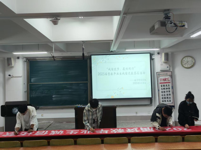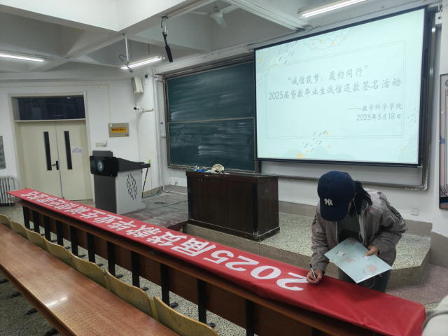 5月18日,喷水 在 A107教室开展2025 届贷款毕业生诚信还款签名活动,2025 届全体贷款毕业生积极参与其中。本次活动以 “诚信筑梦,履约同行” 为主题,旨在强化贷款毕业生的诚信意识,引导他们树立正确的信用观念,切实履行还款义务。