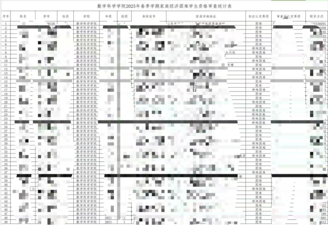 学院严格按照学校要求抽取了2021、2022、2023、2024级部分家庭经济困难学生开展资格审查。组织家庭经济困难学生统一填写《喷水 2025年春季学期家庭经济困难学生资格审査表》,对学生填写的相关信息进行核实,经学院复查后提交学校进行审查。