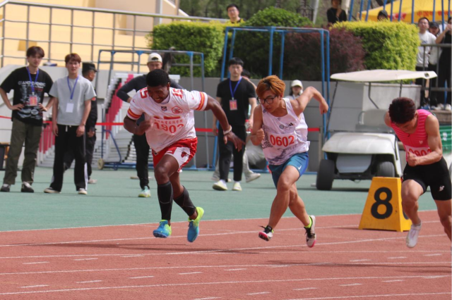 张义宁在教工男子乙组100米项目中获第2名;
