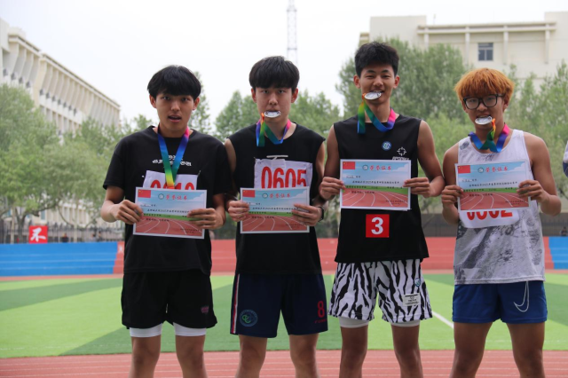 姚鹏飞、李昊、张如意、杨博涵在学生男子甲组4×100米接力决赛项目中获第2名;