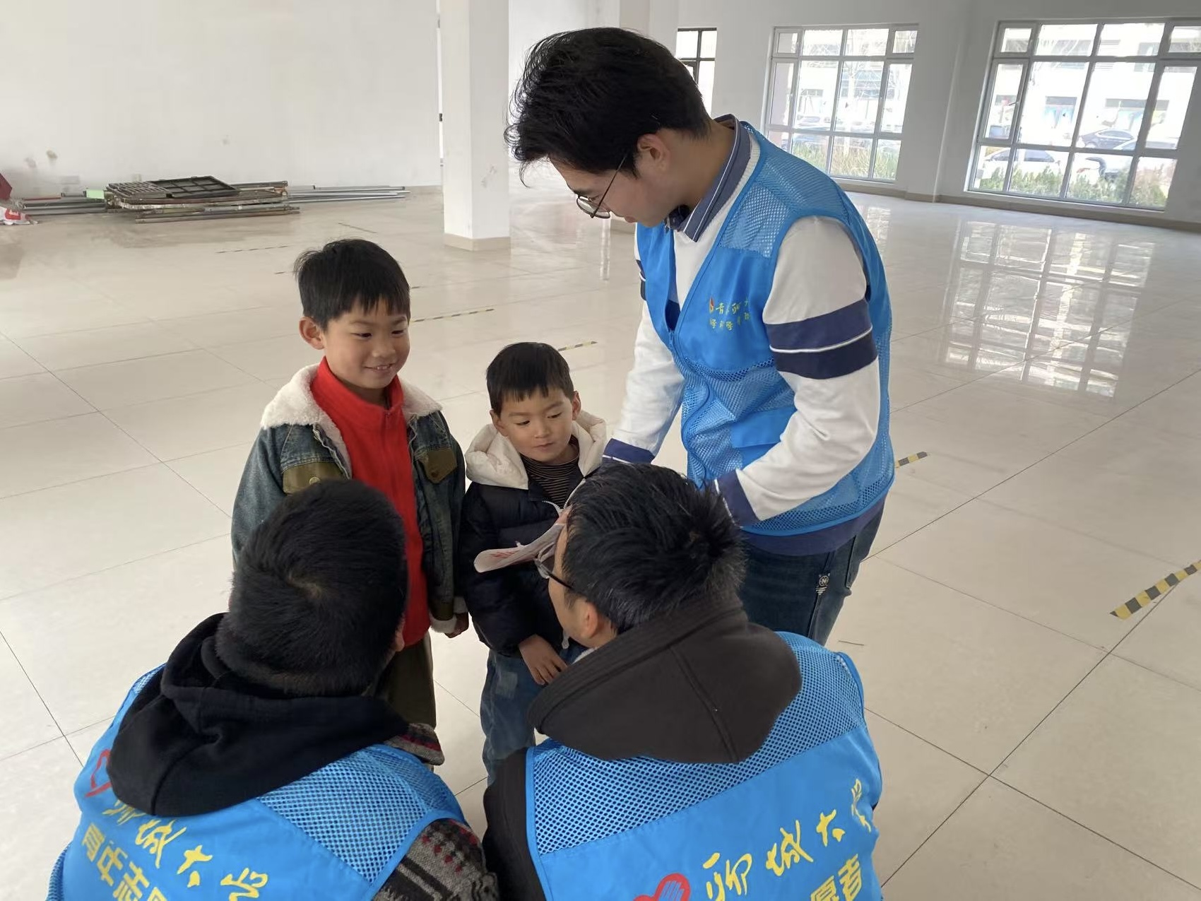 活动伊始,志愿者统一领取蓝马甲和清洁工具,在社区广场入口处设置分流岗,引导居民有序排队。等候区,志愿者将当日报刊逐一向排队居民分发,以缓解居民等待焦躁情绪;在健康咨询区,志愿者维持着现场秩序,时刻关注现场情况,轻声提醒居民保持适当距离,避免人群过于拥挤。对于携带幼儿的居民,志愿者主动引导幼儿至临时儿童看护区,与孩子们互动游戏,确保家长安心办理业务,积极为医生与患者营造良好的沟通环境,引导居民有序就诊。随后,志愿者搬运三八节礼品箱至发放点,协助社区工作人员依次向女性居民分发三八妇女节礼物,真诚地向每一位女性居民送上节日的祝福。