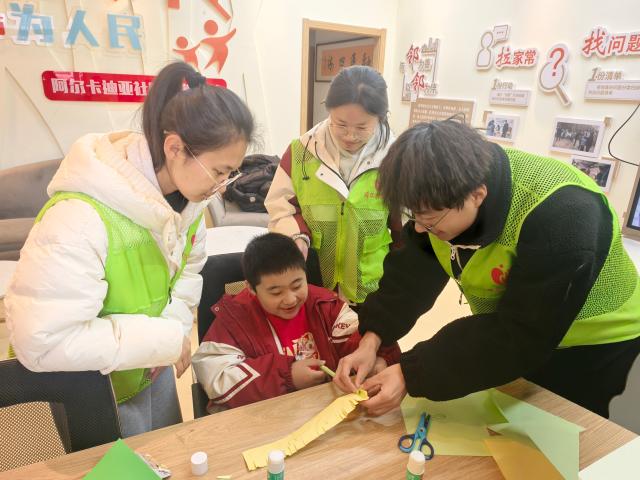 活动伊始,志愿者依据青少年的学业实际情况,开展一对一精准帮扶,面对青少年在作业中遇到的各类难题,他们秉持着专业、负责的态度,从基础知识点着手,细致梳理知识结构,助力孩子们逐步攻克学习难关。手工制作环节,志愿者精心筹备,将彩纸、剪刀、胶水等材料有序分发给青少年后,清晰展示出制作菊花的每一个步骤,讲解了菊花在清明节所承载的文化寓意,从庄重肃穆的缅怀先人之情,延伸到菊花所象征的高洁品格,让青少年们深刻领会传统节日的深厚内涵。在志愿者耐心细致的指导下,青少年们小心翼翼地剪出花瓣与叶片,将绿色卡纸精心卷成条状当作叶干,再把花瓣和叶片粘连到叶干上,经过一番努力,一朵朵栩栩如生的菊花在他们手中诞生,大家脸上情不自禁地洋溢出喜悦与自豪之情。