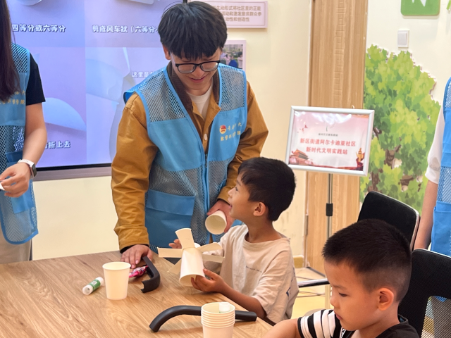 本次活动分为知识讲解、互动提问、手工创作三个环节。志愿者化身“环保小老师”,借助精心制作的PPT,以童趣化的语言向小朋友们讲解垃圾分类的基本知识,从垃圾的四大分类、分类的意义到常见的分类方法,向孩子们普及环保知识,引导他们养成垃圾分类的良好习惯。互动提问环节,志愿者积极鼓励孩子们分享自身的环保行动,小朋友们踊跃举手发言,在交流中加深了对环保行动的认知。手工创作环节,在志愿者的帮助下,孩子们充分发挥想象力,将塑料瓶、废纸、易拉罐等废旧物品,变成了精美的笔筒、创意花盆和趣味小摆件等,在动手实践中切身感受到了“变废为宝”的魅力,体会到资源循环利用的价值。