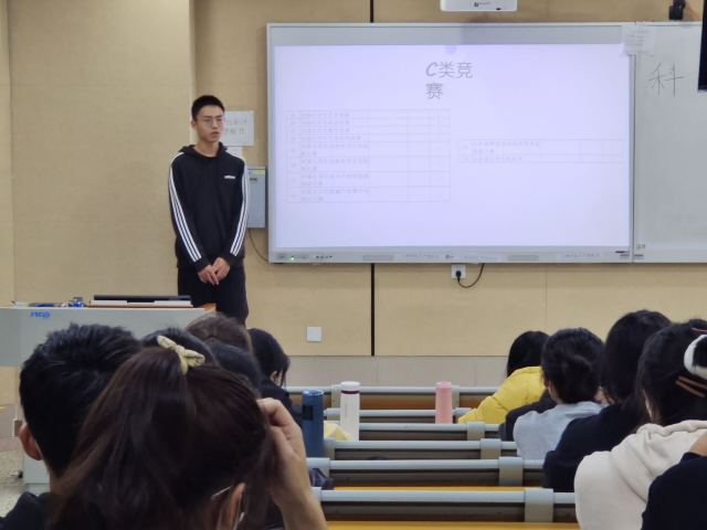 分享会上,王景凯同学首先向各位同学介绍各类竞赛的含金量及难易程度,详细叙述含金量高的挑战杯创新创业大赛、科技创新大赛等大赛的参赛流程,以便于同学们对各类竞赛更有选择性地参加,并和同学们分享参加竞赛的心得体会和注意事项,最后强调团队分工的重要性。随后,高浩然同学围绕比赛过程,向同学们阐述个人经验,分享有关素材准备方面的建议,强调新时代青年要端正态度,认真对待比赛,不要轻言放弃,每一个作品都需要经过团队每个队员认真、用心地打磨。最后,陈柯鑫同学就申报表的填写流程和注意事项提出几点建议,特别指出写申报表要注意表达其科学性和可行性。分享会接近尾声,活动负责人石汉哲同学组织宣讲人与同学们进行交流互动,并对宣讲内容进行了总结。