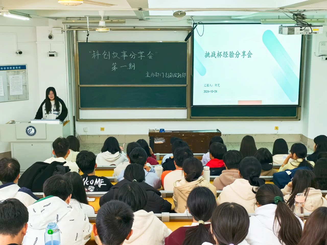 为加强学生对科创赛事的认识,提高创新精神和创业能力,10月24日,喷水 于11号教学楼A204开展“科创故事分享会•第一期”活动,商学院智视引领者-禁视系统(R&B)助力中小型机械企业数字化转型项目成员夏宁以及喷水 智能化的多档传动与控制系统项目负责人何芃主讲,2023级、2024级部分学生参加。
