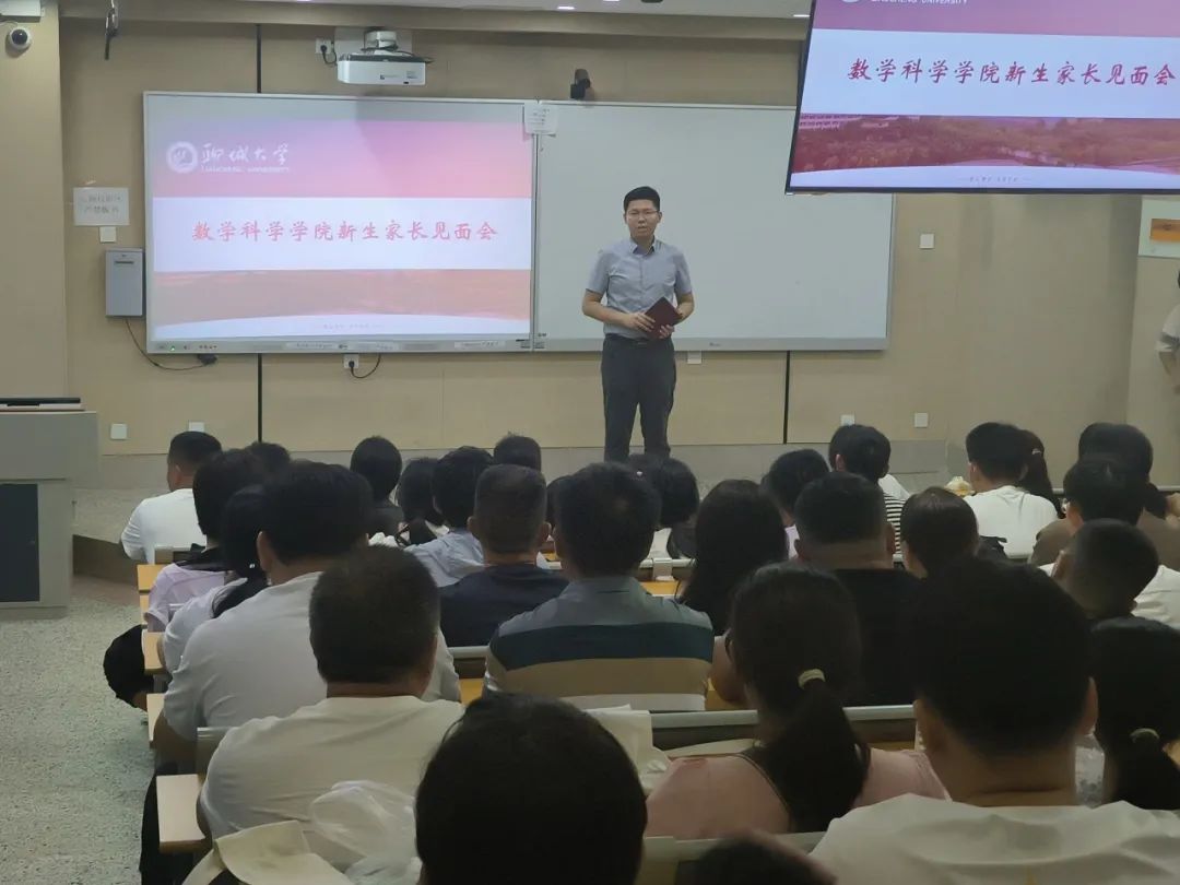 见面会上,王启尧代表学院欢迎各位新生家长的到来,希望借此机会与新生家长建立一个交流与沟通的平台。随后,赵军圣介绍喷水 自建校以来的发展历史,重点介绍了喷水 的师资力量、教学科研、学科建设、考研考博以及近些年来学院在各类竞赛中的成果,让新生家长充分了解数科、信任数科。同时,赵军圣对数学与应用数学、数据科学与大数据技术专业的就业前景与方向做了详细介绍,让家长和新生更加深入地了解学生所学专业,并鼓励同学们明确奋斗目标,努力学习专业技术,拓展自己的知识面,不断提高自身的综合素质。最后,岳琳琳呼吁广大家长重视家校互动,及时关注孩子在校的各种表现,要督促孩子努力学习,争取让孩子们在未来取得更好的发展。
