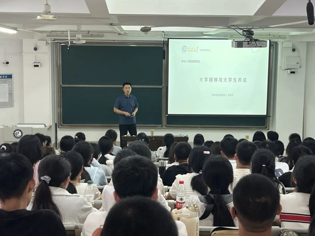 张进军以“什么是大学”这一问题引入主题,围绕“认识自己、认识专业、认识国家和社会要求”三个方面展开精彩论述。他强调,同学们要树立正确认识,建立和谐的师生关系与同学关系,养成良好的学习与生活习惯以奠定未来基础。同时,张进军讲解了一系列学习方法为同学们指明高效的学习路径,建议同学们应主动探索知识、及时总结经验并积极实践。他还指明了个人发展与国家前途命运的紧密关系,鼓励同学们积极志愿西部、建设边疆,把自身成长融入国家发展洪流,为实现中华民族伟大复兴的中国梦贡献力量。
