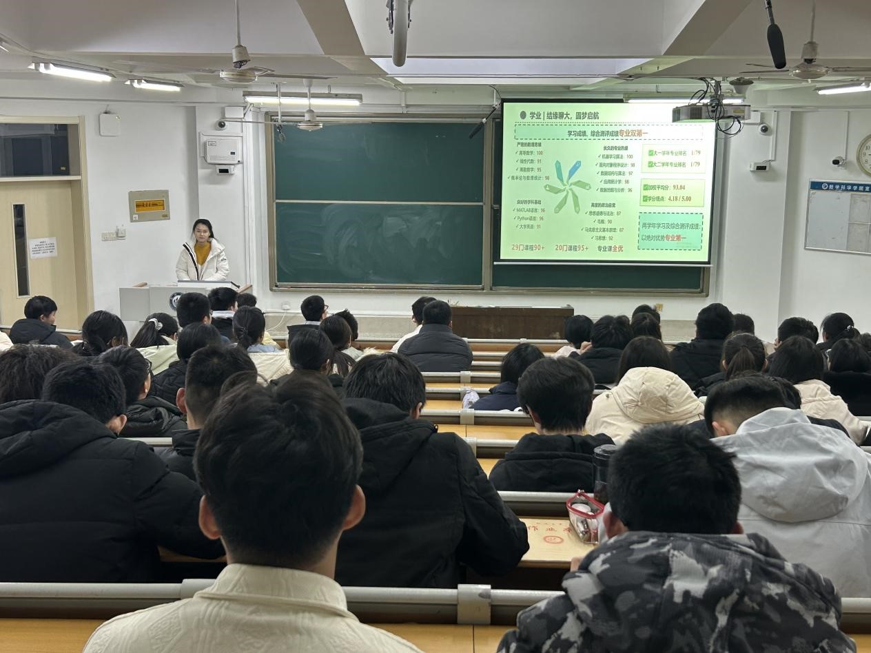 为助力学生汲取榜样的力量,激发学生学习动力与热情,11月22日,喷水 于11号教学楼A207教室举办优秀学生学习经验分享报告会,“山东省优秀学生”宋奕主讲,2024级部分学生参加。