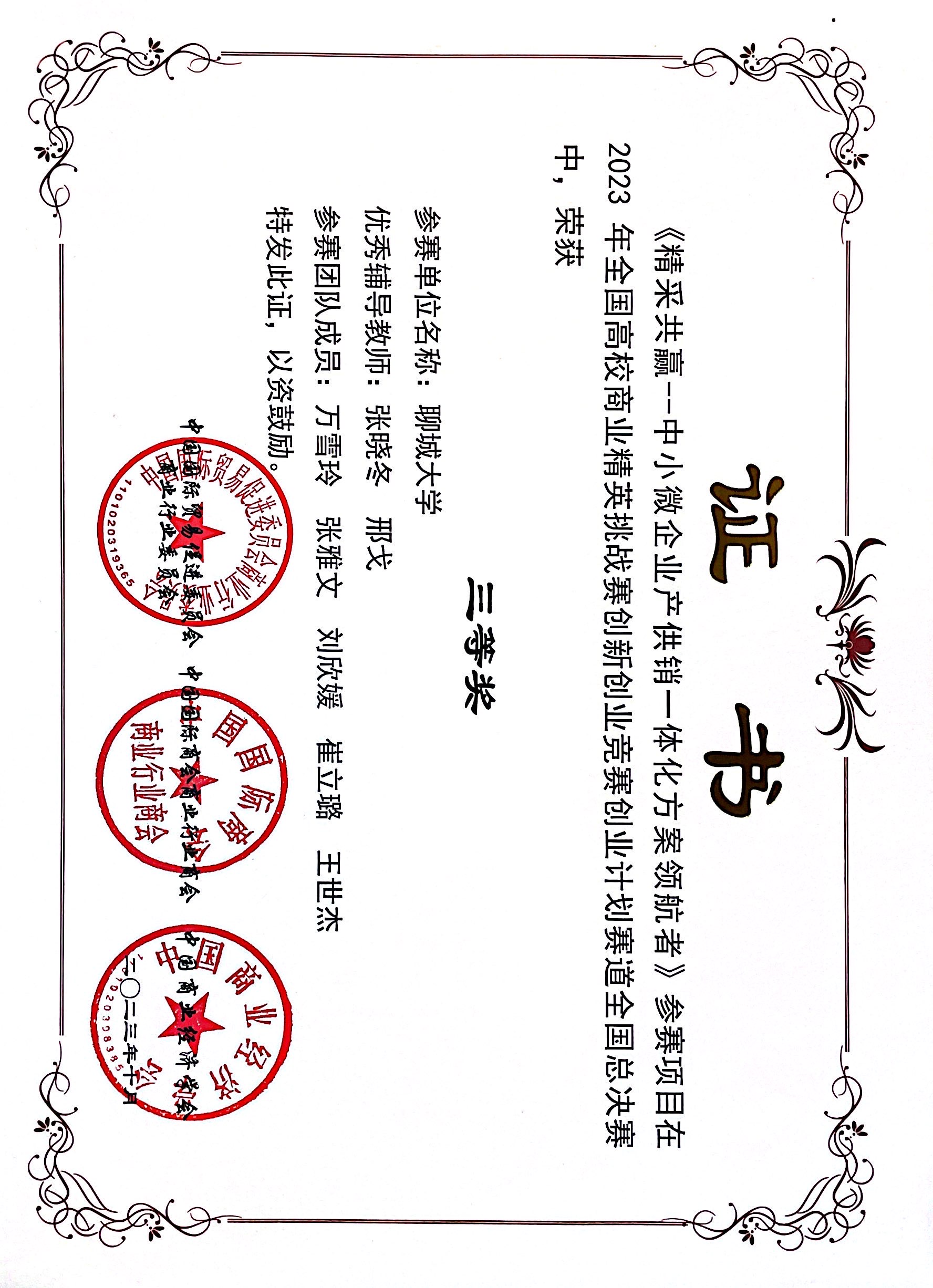 全国高校商业精英挑战赛三等奖(2023)