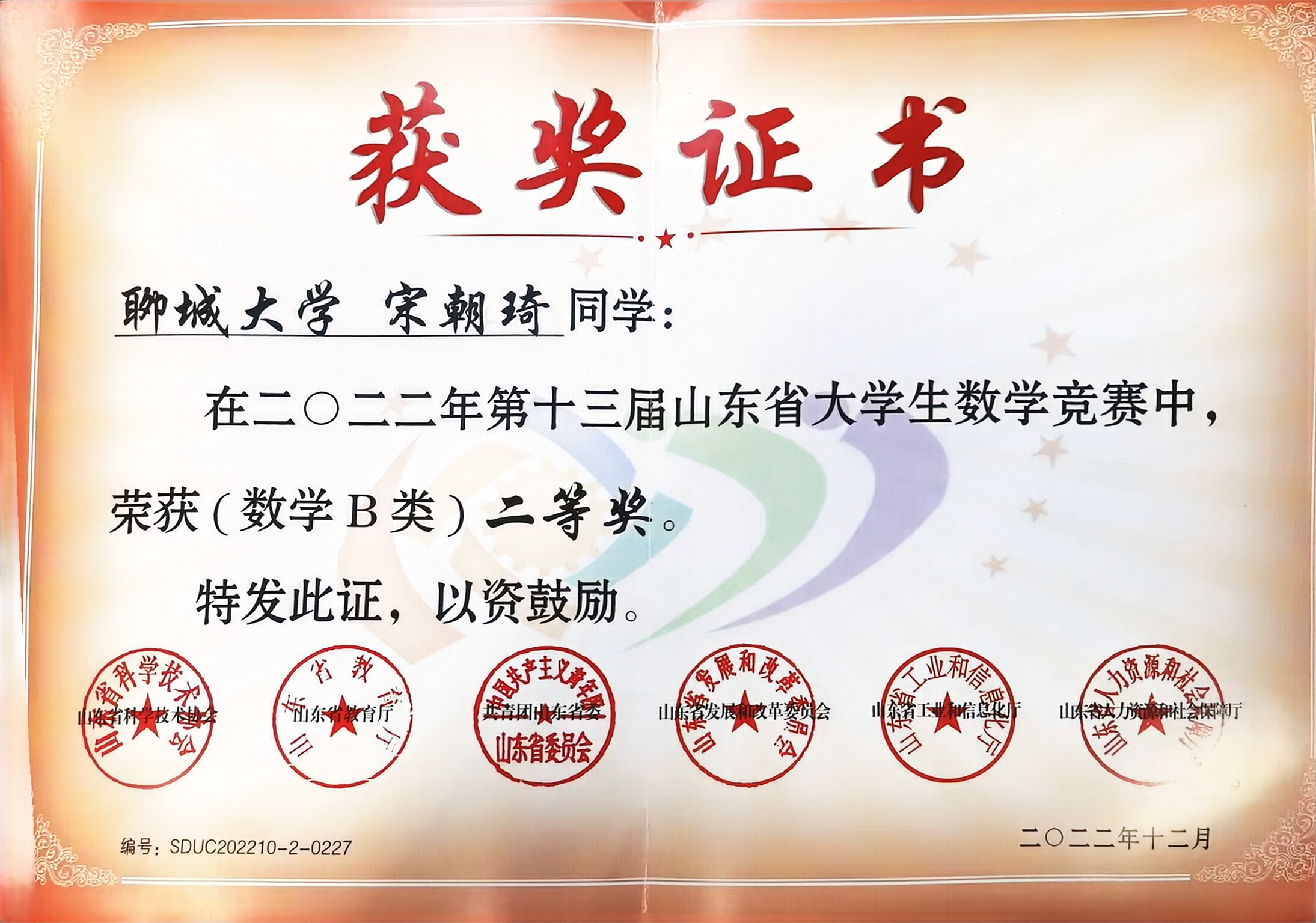 2023.01 第十四届全国大学生数学竞赛(数学B类)二等奖