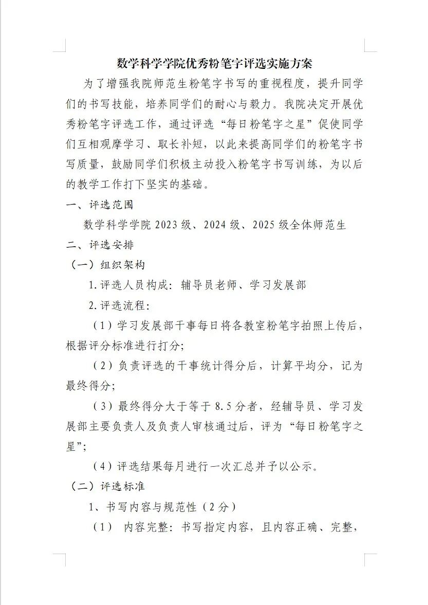 学院出台《喷水 “学风建设优秀班级”评选实施方案》《喷水 “优秀宿舍”评选实施方案》《喷水 优秀粉笔字评选实施方案》等制度,将评选结果纳入学生综合测评体系;将研究生学术规范考核纳入常规,坚持学术不端“零容忍”,构建“学业 + 科研 + 日常”综合测评体系,形成“规范保障创新、创新关联激励”的机制。
