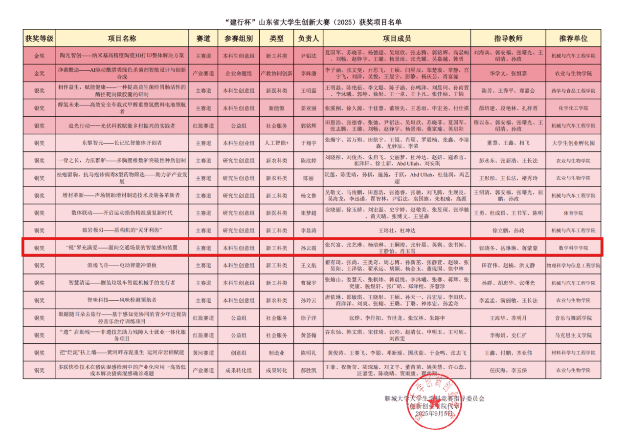 在创新创业实践领域,2024-2025年度,学院立项的6个大创项目中,2项获得省级立项,展现了扎实的项目培育基础;其中,“‘视’界充满爱——面向交通场景的智能感知装置”项目在“建行杯”山东省创新大赛中斩获铜奖,充分体现了学子们将专业知识与社会需求深度融合、以创新解决实际问题的综合能力。