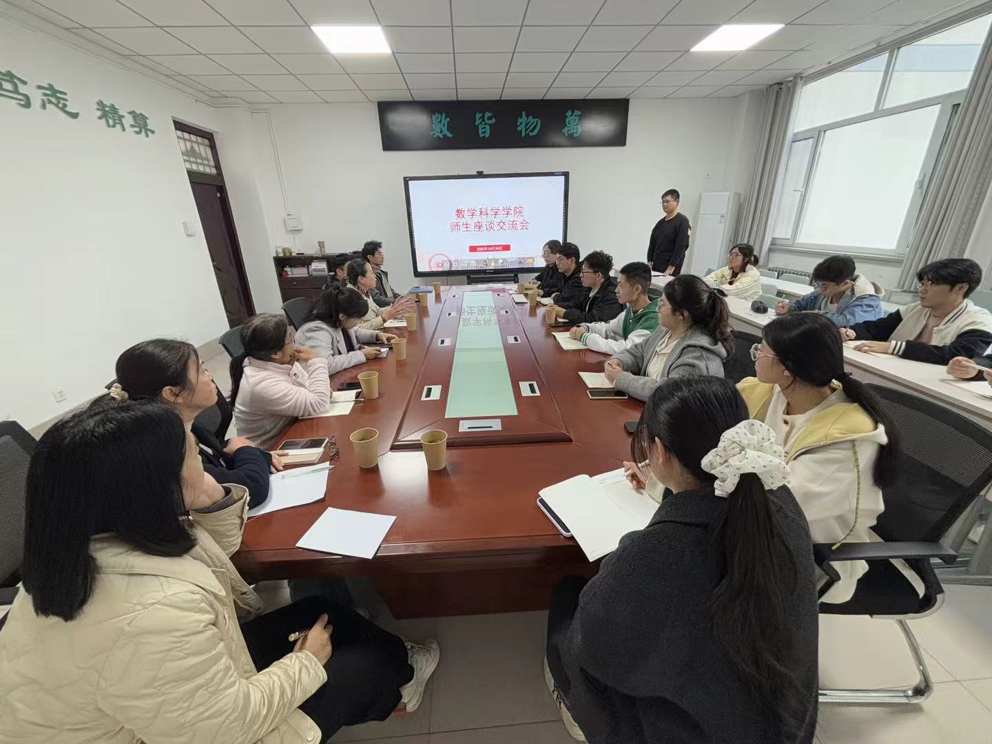 本次座谈会围绕学业指导与生涯规划两大主题展开。会上,学生代表踊跃发言,围绕课程教学、专业学习、学科竞赛备赛方法及职业发展方向等关键问题积极提问。老师们结合专业培养方案、行业发展趋势与自身丰富经验,不仅给出了具体的解答与指导,还系统指出了数学与应用专业和数据科学与大数据技术专业在科研深造、金融科技、数据分析、教育行业等领域的多元发展出路。
