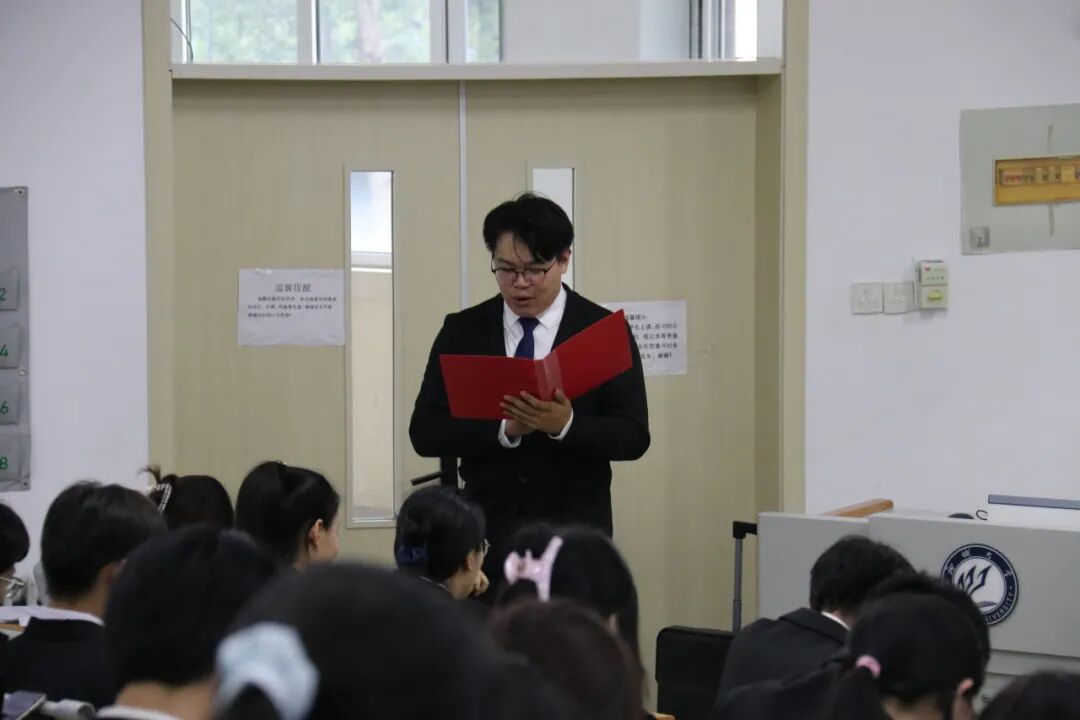 在庄严的国歌声中,大会拉开序幕。工作人员宣读来自兄弟学院—医学院的贺词。