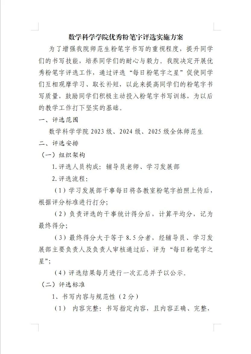 学院出台《喷水 “学风建设优秀班级”评选实施方案》《喷水 “优秀宿舍”评选实施方案》《喷水 优秀粉笔字评选实施方案》等制度,将评选结果纳入学生综合测评体系;将研究生学术规范考核纳入常规,坚持学术不端“零容忍”,构建“学业 + 科研 + 日常”综合测评体系,形成“规范保障创新、创新关联激励”的机制。