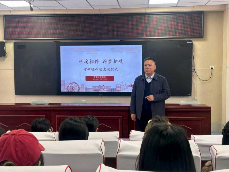 为帮助考研学子缓解备考压力,坚定迎考信心,12月11日,喷水 于11号教学楼A201教室开展“研途相伴,逐梦护航”考研暖心包发放仪式。本次活动由学院团委书记岳琳琳主持,学院党委书记刘德芳、副院长赵军圣出席本次活动。
